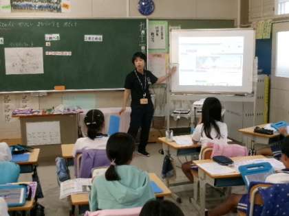 第1〜4校時3年生がそれぞれの教室で、図書館の出前授業を受けました。図書館に行かずに電子書籍が借りられるんですね。