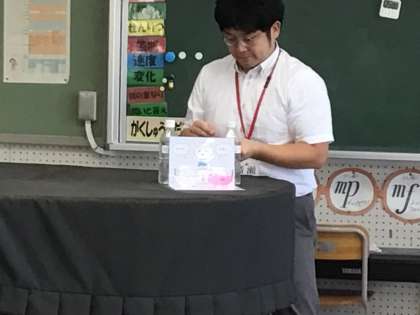 4年生が音楽室で水道の出前授業を受けました。水道水を安全に飲むことができる国は、世界に11ヵ国しかないなんて驚きですね。