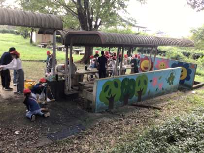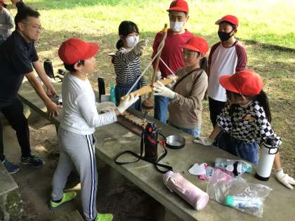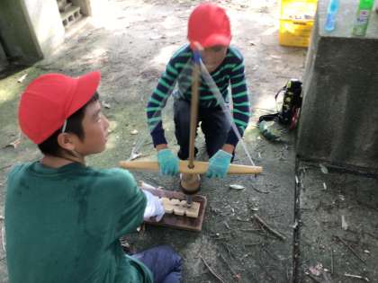 5年生がふれあいの森で火起こし体験をしました。なかなか難しいですねー。