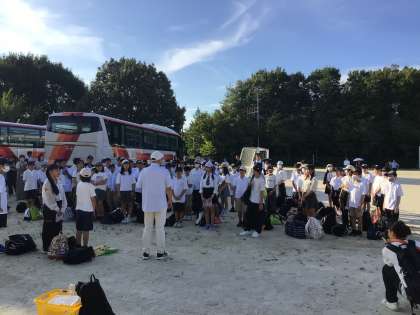 本日9月19日(木)から1泊2日で6年生が、奈良と京都に修学旅行に出かけます。今からバスに乗って出発します。