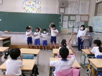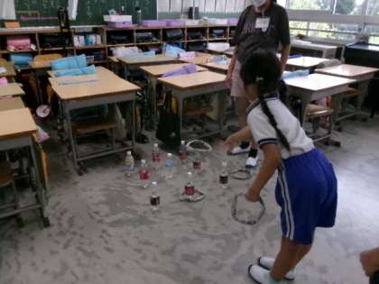 イス取りゲームや輪投げ、ジェスチャークイズなど、雨の中でも楽しく活動できました。