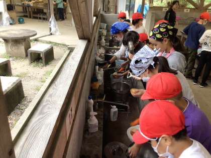 野外炊事がスタートしました。