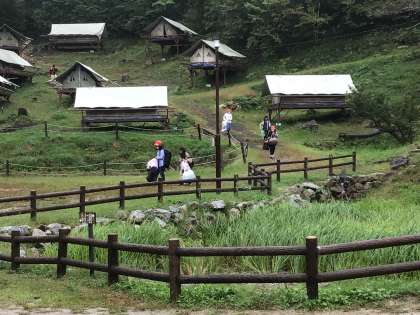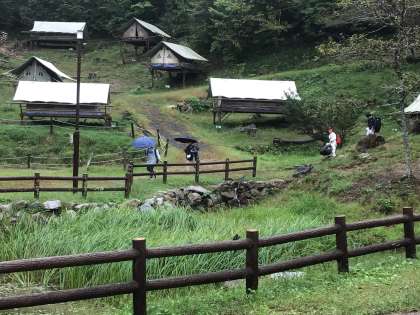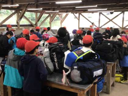 朝食の片付け、テントの清掃が終わり、今から所員の方に点検していただきます。