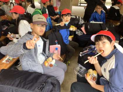 さえずり広場に移動し、注文したお弁当をいただきました。午後1時からキーホルダー作りです。