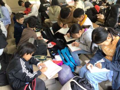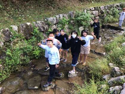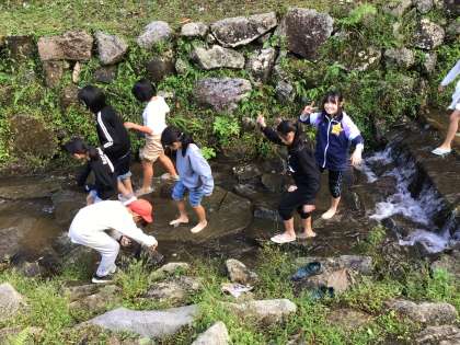 しおりに昨日と今日のふりかえりを書きました。書けた人は少しだけ自由時間、川遊びをする人が多くいました。