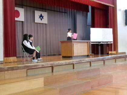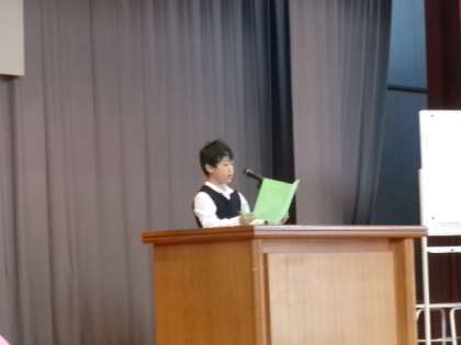 10月11日(金)第1校時体育館にて、前期終業・後期始業式を行いました。低中高学年代表のスピーチがとても立派でした。