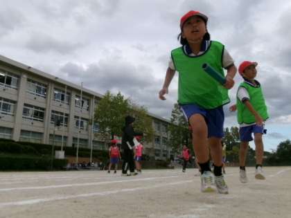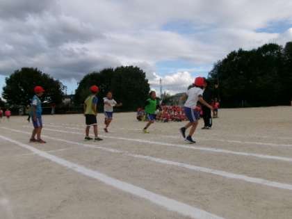 3年生が運動会のリレー練習をしていました。リレーはいつもすごく盛り上がりますね。