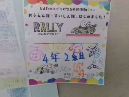 井上小学校は「とよたのエがオになる市民活動ラリー」おうえん隊・すいしん隊に登録しています。明日の40周年記念事業でも、ラリー特別授業を受けます。