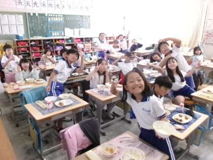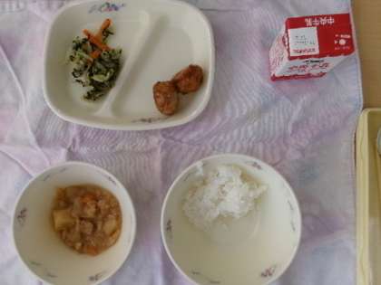 今日の給食は、磯香あえ・愛知の野菜入り肉だんご・じゃがいもとツナのうま煮でした。おいしかったですね。