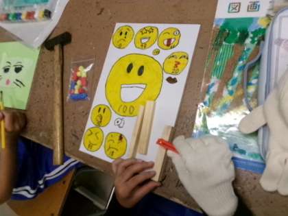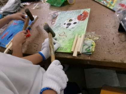 3年生が「くぎうちビー玉ゲーム」を作っていました。楽しいゲームができそうですね。