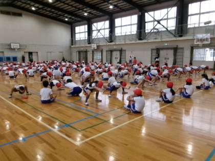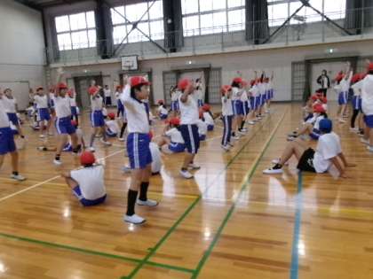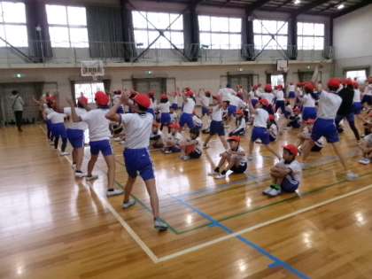 56年生が体育館で、ロックソーランの合同練習をしていました。だいぶ出来上がってきましたねえ。
