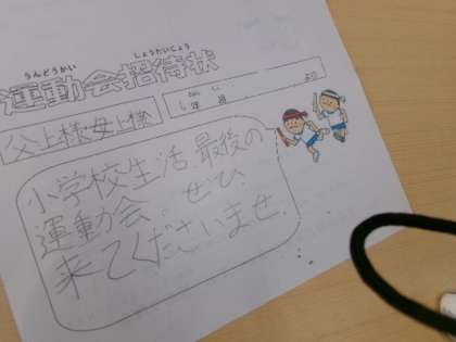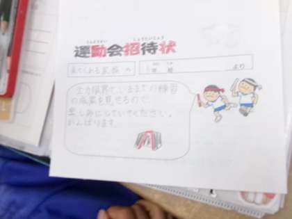 運動会の招待状を作っているクラスがありました。土曜日が楽しみです。