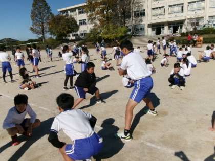 5・6年生ロックソーラン合同練習です。教えて教えられて互いに刺激し合っています。