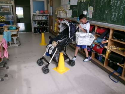 かごとバックを持ってベビーカーを引いての買い物です。とっても大変ですね。