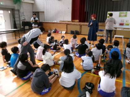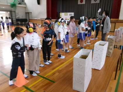 3年生が体育館で5名の講師の方をお招きし、高齢者体験をしました。