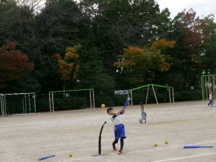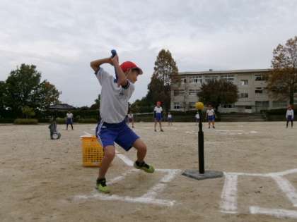 5年生がティーボールをしていました。みんなどんどんかっ飛ばせー。