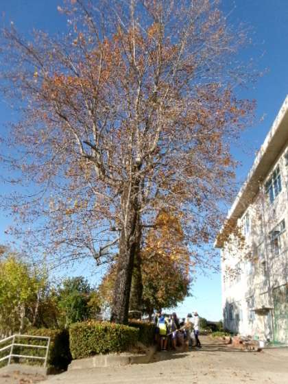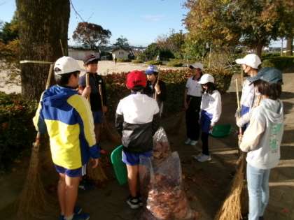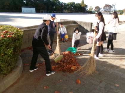 11月18日(月)朝8時15分頃のゆりのきロードの様子です。環境委員が大量のゆりの木の葉を集めてくれています。学校の環境整備をありがとうございます。