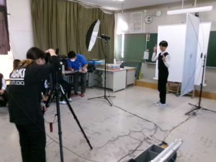 6年生が卒業アルバム個人写真の撮影をしました。笑顔が素敵ですね。
