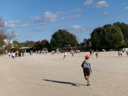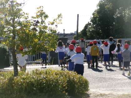 井上小学校からもブルーインパルス6台の飛行を見ることができました。