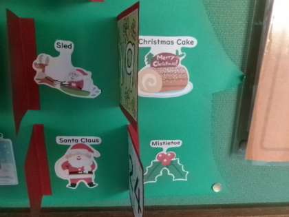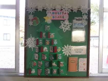 図工室前廊下の掲示「ENGLISH BOARD」が模様替えしていました。