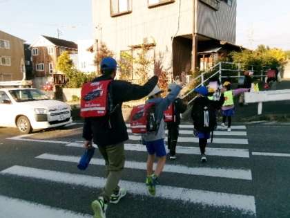 12月6日(金)朝の登校の様子です。しっかり安全確認できていますね。立哨当番ありがとうございました。