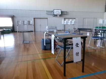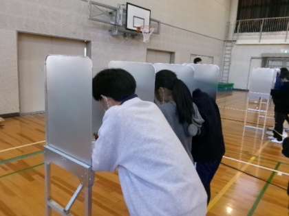 市役所から講師の方々を4名お招きし、6年生が体育館で選挙の出前授業を受けました。