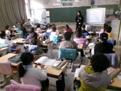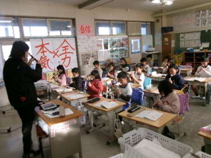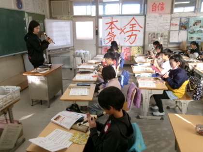 3年生がリコーダー「山のポルカ」を吹いていました。右手も上手に使ってできたかな?