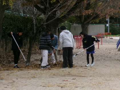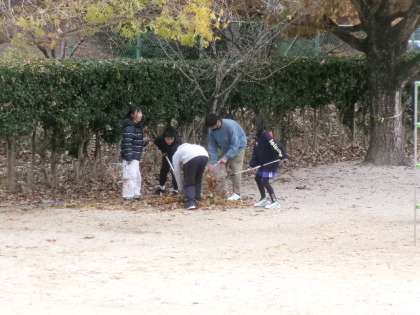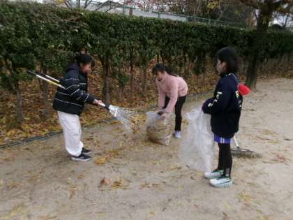 6年生が休み時間を削って、落ち葉拾いをしてくれました。学校のために、いつもありがとうございます。