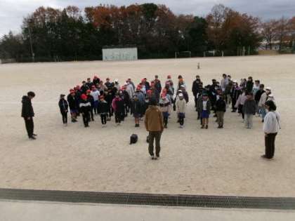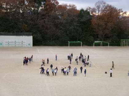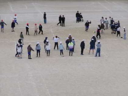 5年生が第5校時に運動場で、学年集会と学年レクをしていました。集会とレク、メリハリつけてやっていましたね。