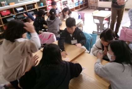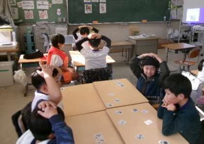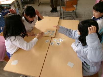 3年生が英語でかるたとりをしていました。とっても速い子がいますね。