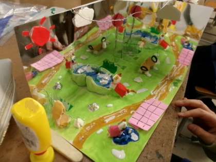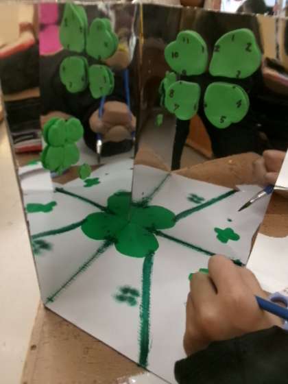 5年生「ミラクル!ミラーワールド」の作品です。いい作品がたくさん出来上がってきましたね。