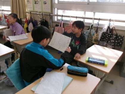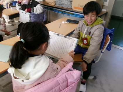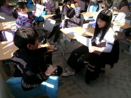 3年生が「はじめ」「なか」「おわり」を意識して、ペアでスピーチの練習をしていました。言いたいことがしっかり伝わるように、練習していきましょうね。