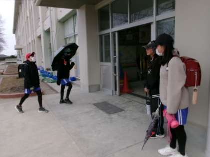 企画委員による朝のあいさつ運動の様子です。今日もしっかり止まって頭を下げてあいさつする子がいました。えらいですね。