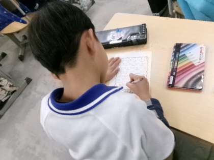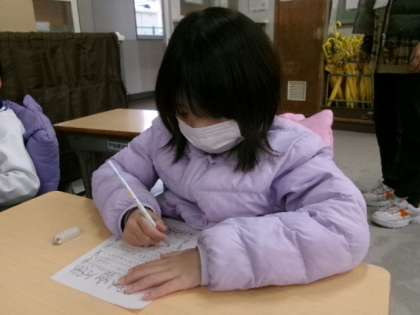 1年生が「感謝の会」に向けて、お礼の手紙を書いていました。気持ちを込めて丁寧に書けましたね。