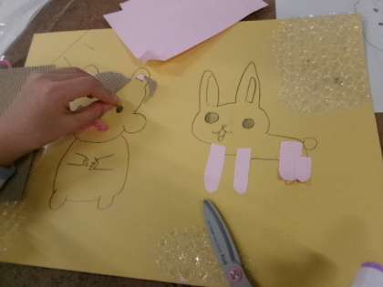 3年生「プチプチシール入り紙はんが」が始まりました。どんな作品になるのかとても楽しみです。