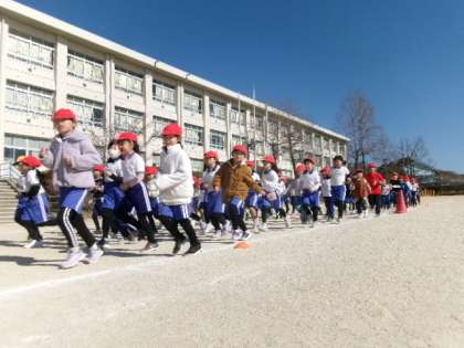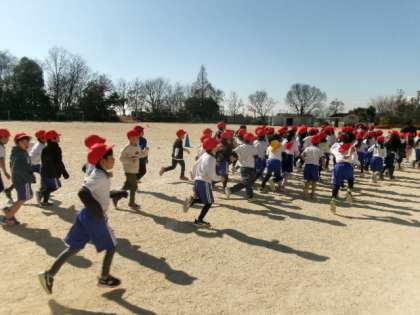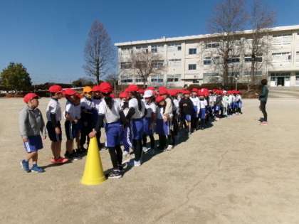 第3校時、1・2年生が持久走記録会のコース確認をしていました。間違えないでね。