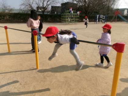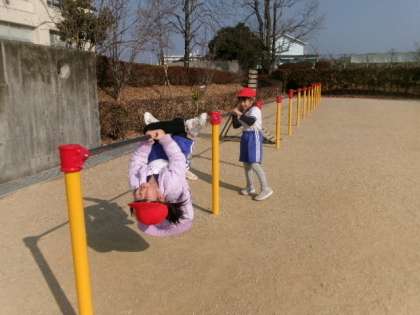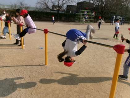 なかよしタイムの様子です。鉄棒で遊んでいる子がいました。