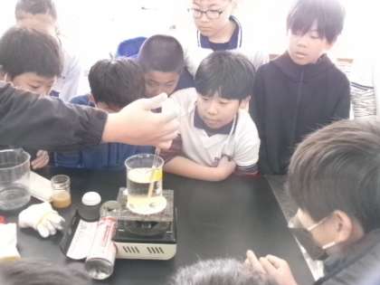 4年生「水の熱の伝わり方」の様子です。みんなとても真剣な目で見ていますね。