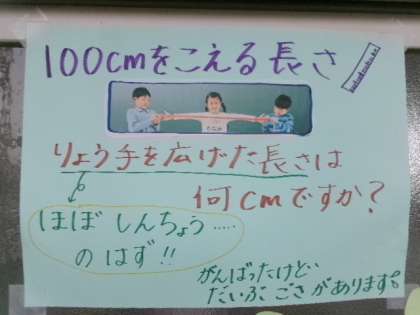 2年生「100cmをこえる長さ」です。テープの長さは、何でしょう?