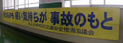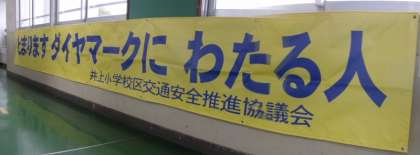 本年度の交通安全標語横断幕が完成しました。校舎2階と3階の廊下に掲示しました。ぜひ明日の授業参観でご覧ください。