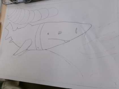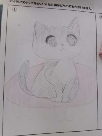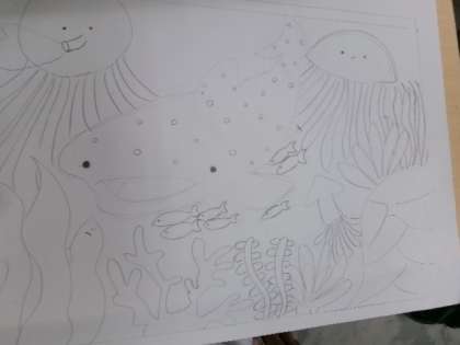 5年生がステンシル版画の下絵を描いていました。