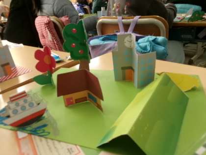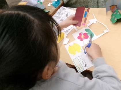 上手にハサミで切って、しっかりと折って、器用に紙を立てることができましたね。