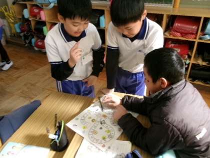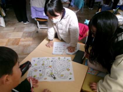 4年生が英語の双六をしていました。とても楽しそうでした。