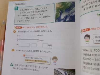 5年生速さの学習をしていました。速さと時間と距離の関係、頑張って考えてくださいね。