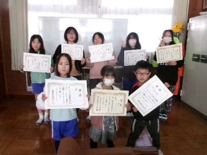 ふれあいタイムに校長室で、読書感想画などの表彰伝達をしました。おめでとうございます。