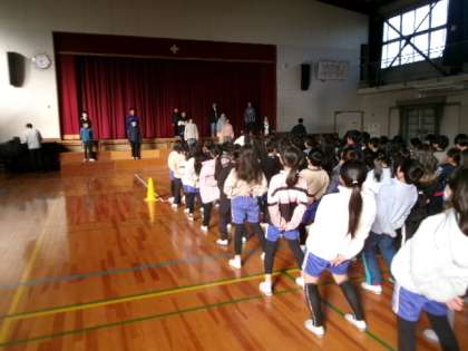 2月20日(木)朝体育館で、6年生を送る会のリハーサルが行われていました。