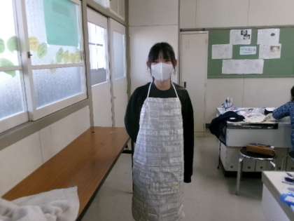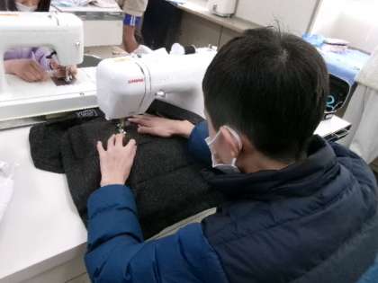 5年生のエプロンづくりも、だいぶ完成してきたようです。
