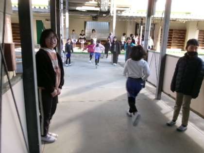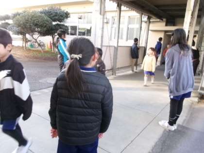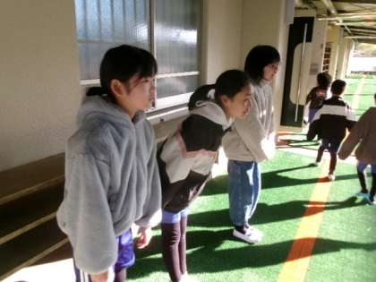 2月21日(金)朝、体育館前で5年生の企画委員が、あいさつ運動をしていました。