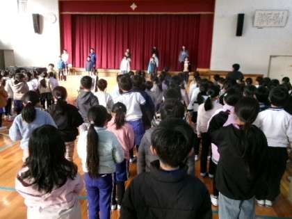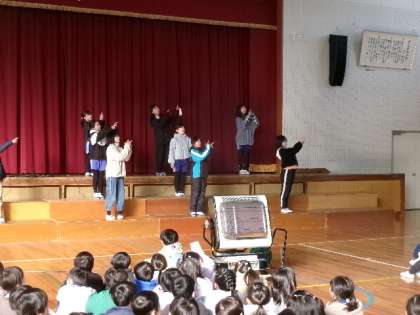 5年生の送る会リハーサルです。ポーズつきがディズニーのスタッフみたいで楽しいですね。