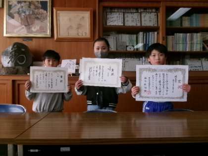 表彰伝達 公開日 2025/02/26 更新日 2025/02/26 校長室から 2月15日(火)ふれあいタイム校長室にて、読書感想文と読書感想画、習字の表彰伝達をしました。これからの活躍が楽しみです。